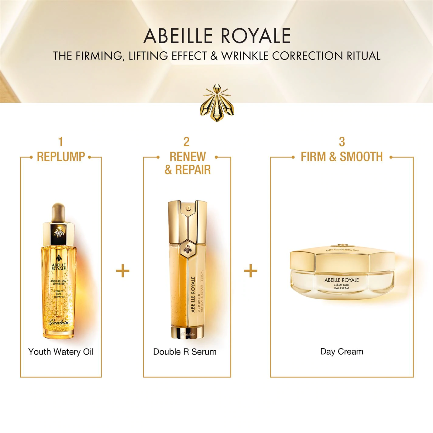 Guerlain Abeille Royale Day Cream combines Black Bee Repair technology and a vitamin C derivative to firm the skin, smooth wrinkles and fine lines and visibly enhance the radiance of the complexion.The cream’s silky, exceptionnally fine texture offers optimal comfort without leaving a greasy film.In the name of beauty, Guerlain is committed to a more sustainable world.