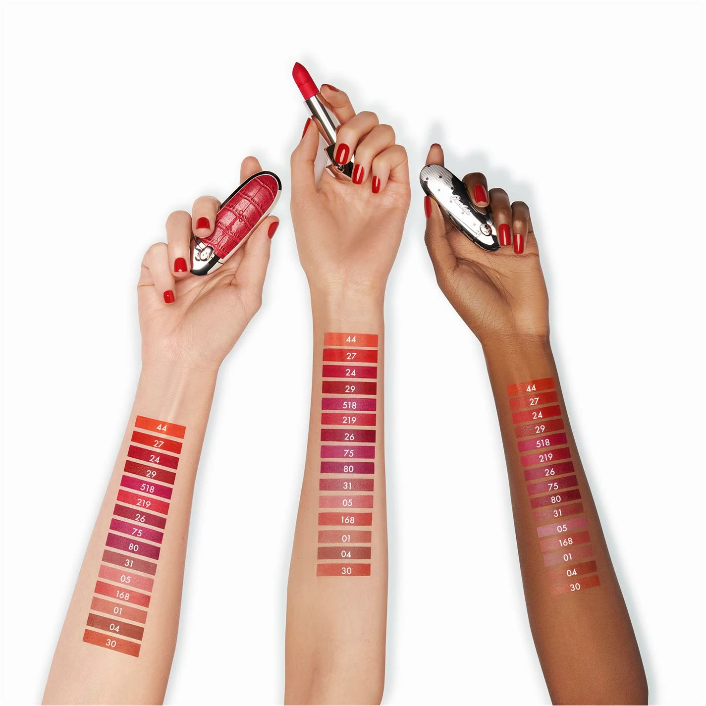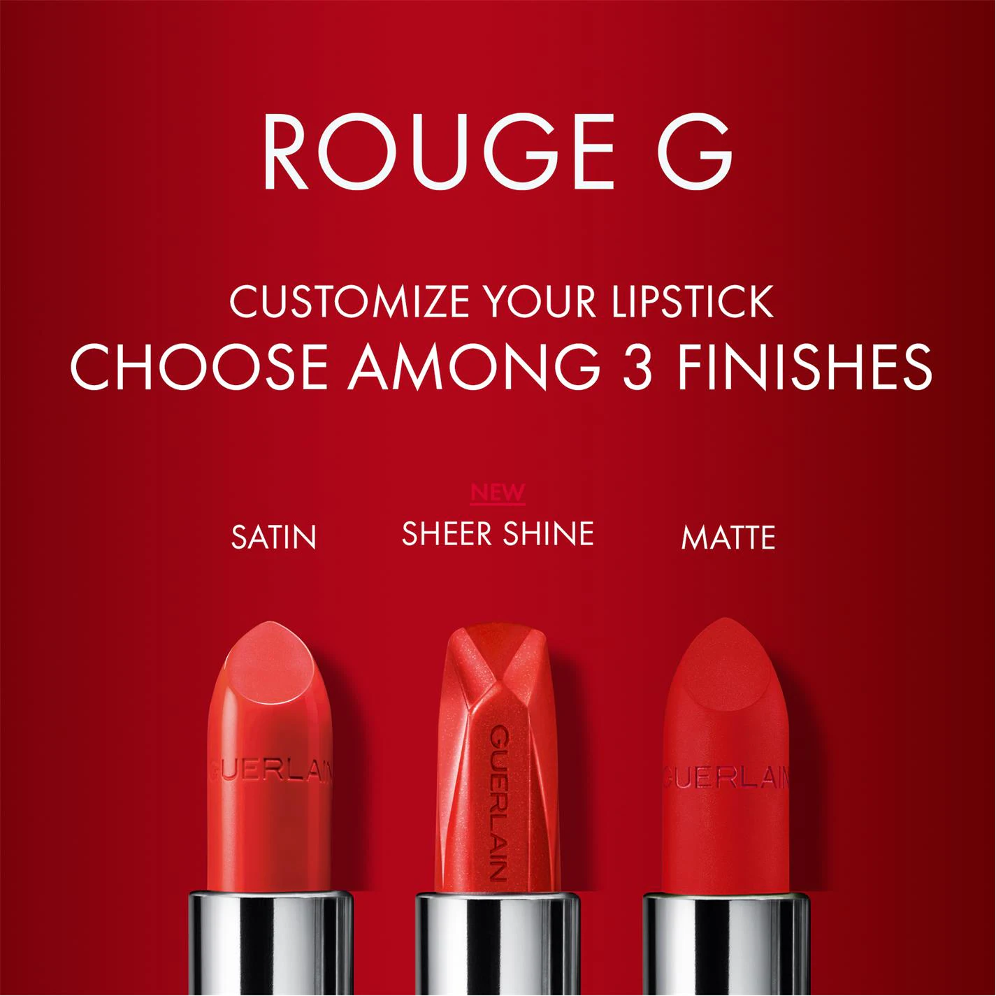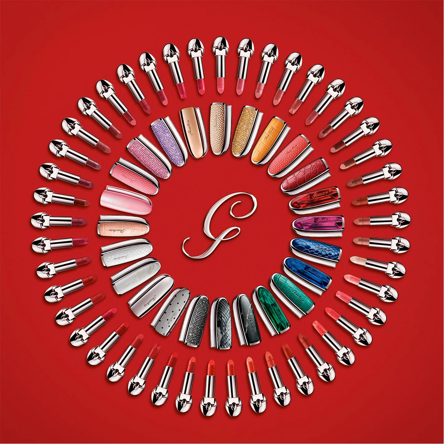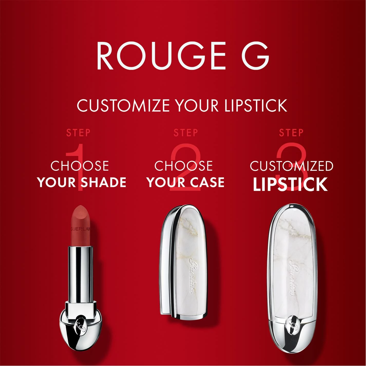 Choose your shade along with your lipstick case: Every woman is unique so Guerlain brings you the ultimate luxury of customisable lips. Discover Rouge G de Guerlain, the first jewel lipstick to customise to your style. First, choose your lipstick from a wide range of shades and finishes to match your look: from the most nude to the most extravagant, from satin to semi-matte or even metallic.