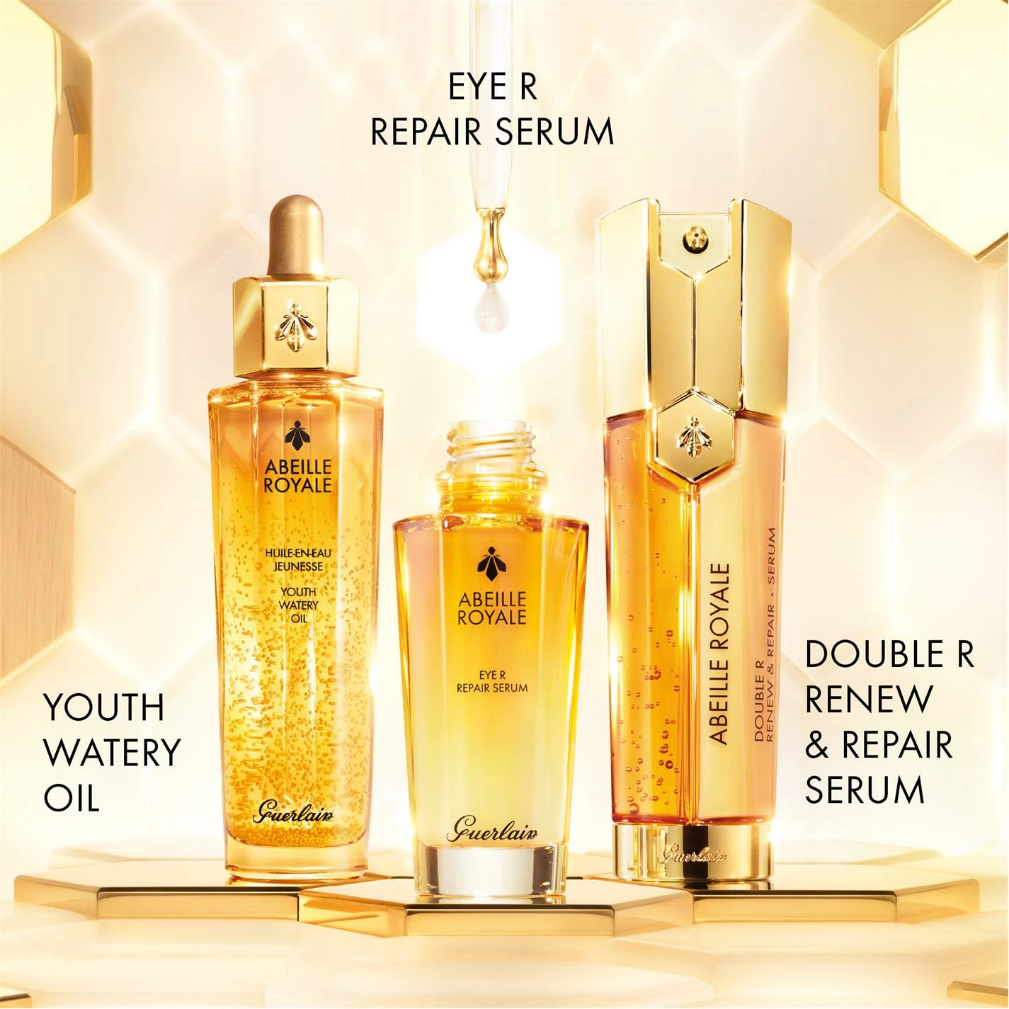 Eye R Repair Serum is Abeille Royale anti-ageing skincare expert dedicated to the youthfulness and openness of the eyes. With concentrated efficacy, its formula composed with 94% naturally-derived ingredients* provides a spectacular eye-lifting effect. The eye area looks more open; puffiness and dark circles are reduced.